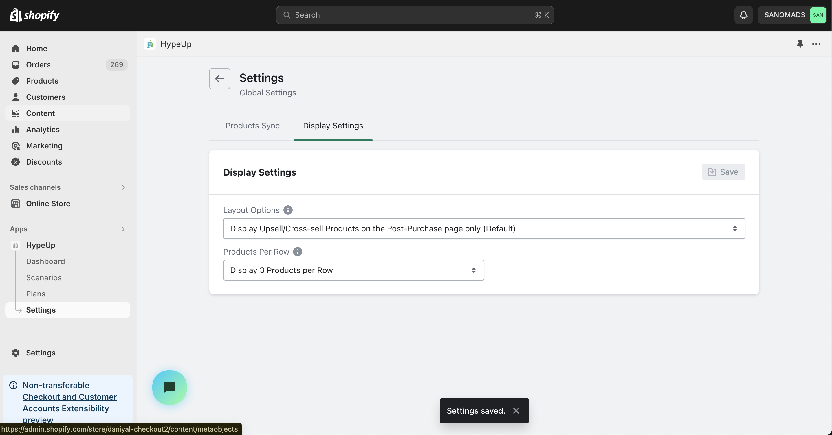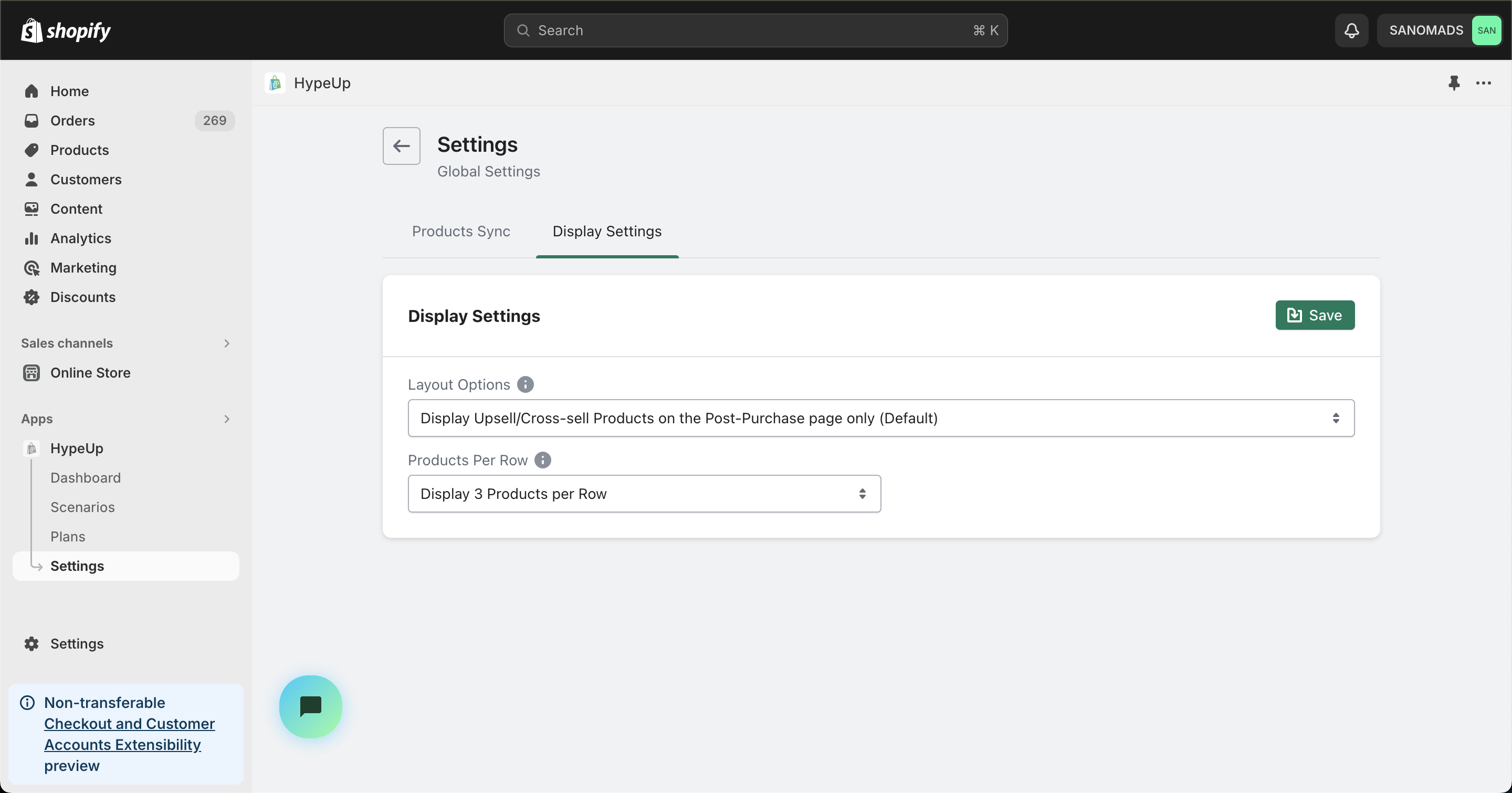 12. Go to app [<mark style="color:green;">**Settings**</mark>](https://admin.shopify.com/apps/upsell-app30/settings), click Display Settings then select a <mark style="color:green;">**Layout Option**</mark> and <mark style="color:green;">**Products Per Row**</mark> for Post Purchase checkout page layout.
